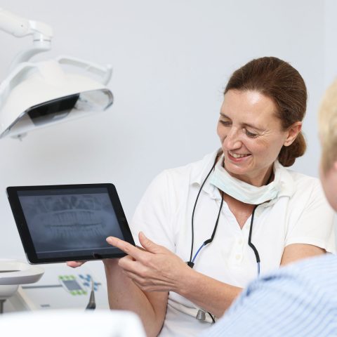 Bei den Vorsorgeuntersuchungen werden alle Zähne und die umgebenden Gewebe der Mundhöhle völlig schmerzfrei untersucht und die Zähne von Zahnstein befreit. Zahnzwischenräume sind mit bloßem Auge nicht zu beurteilen, daher werden in regelmäßigen Abständen Röntgenbilder angefertigt. Hierbei unterstützt uns die moderne, digitale Röntgendiagnostik. Eine Vorsorgeuntersuchung sollte idealerweise zweimal jährlich erfolgen.