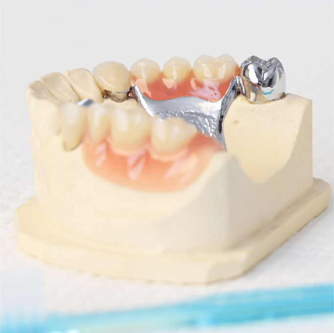 Ist ein Zahn verloren gegangen, kann die Lücke durch eine Brücke geschlossen werden, d.h. die die Lücke begrenzenden Zähne bekommen Kronen und tragen den fehlenden Zahn als Brückenglied. Ihre Zahnreihe ist wieder geschlossen.